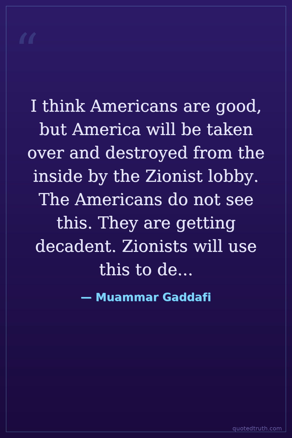 I think Americans are good, but America will be taken over and destroyed from the inside by the Zionist lobby. The Americans do not see this. They are getting decadent. Zionists will use this to destroy them.