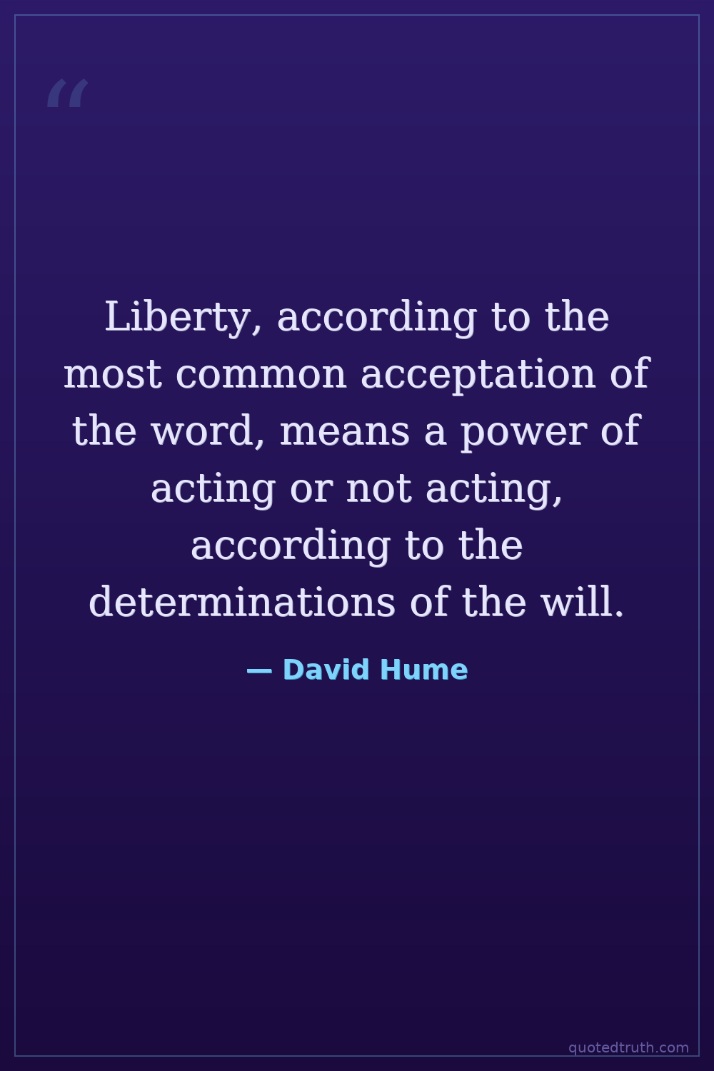 Liberty, according to the most common acceptation of the word, means a power of acting or not acting, according to the determinations of the will.