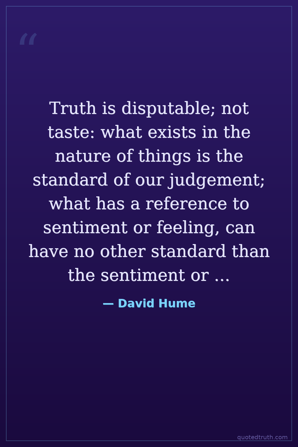 Truth is disputable; not taste: what exists in the nature of things is the standard of our judgement; what has a reference to sentiment or feeling, can have no other standard than the sentiment or feeling itself.