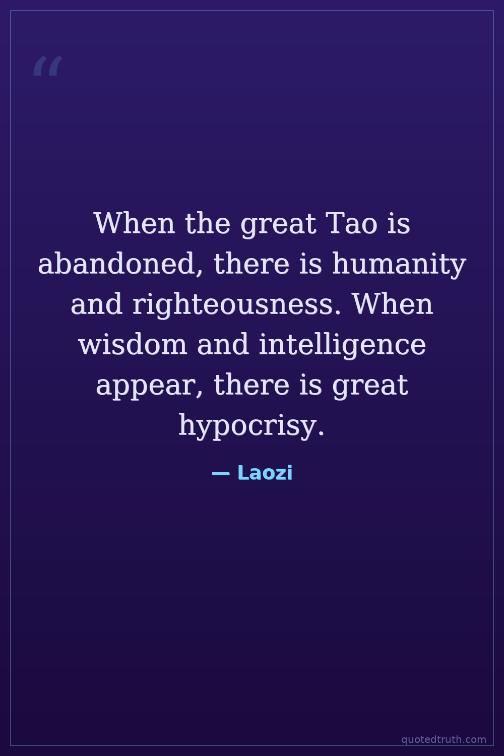 When the great Tao is abandoned, there is humanity and righteousness. When wisdom and intelligence appear, there is great hypocrisy.