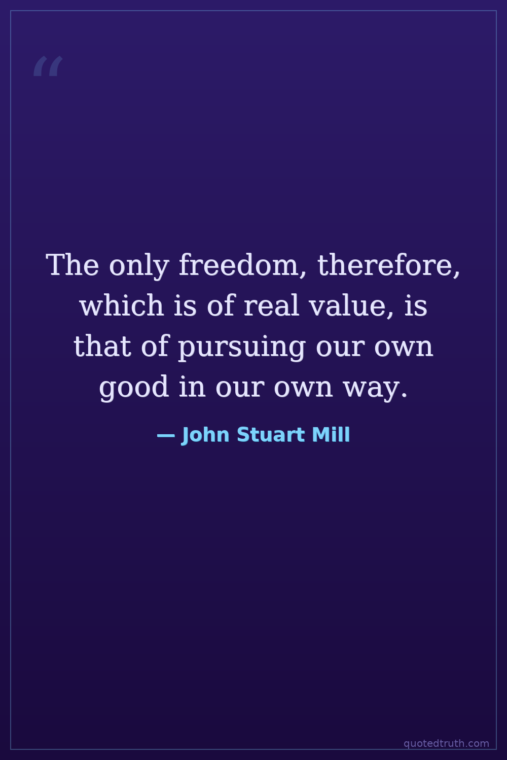 The only freedom, therefore, which is of real value, is that of pursuing our own good in our own way.