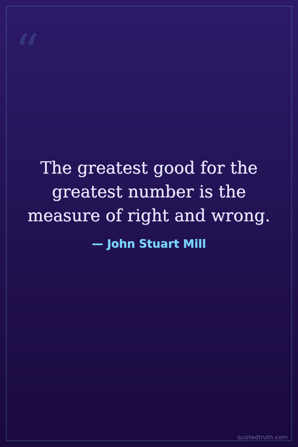 The greatest good for the greatest number is the measure of right and wrong.