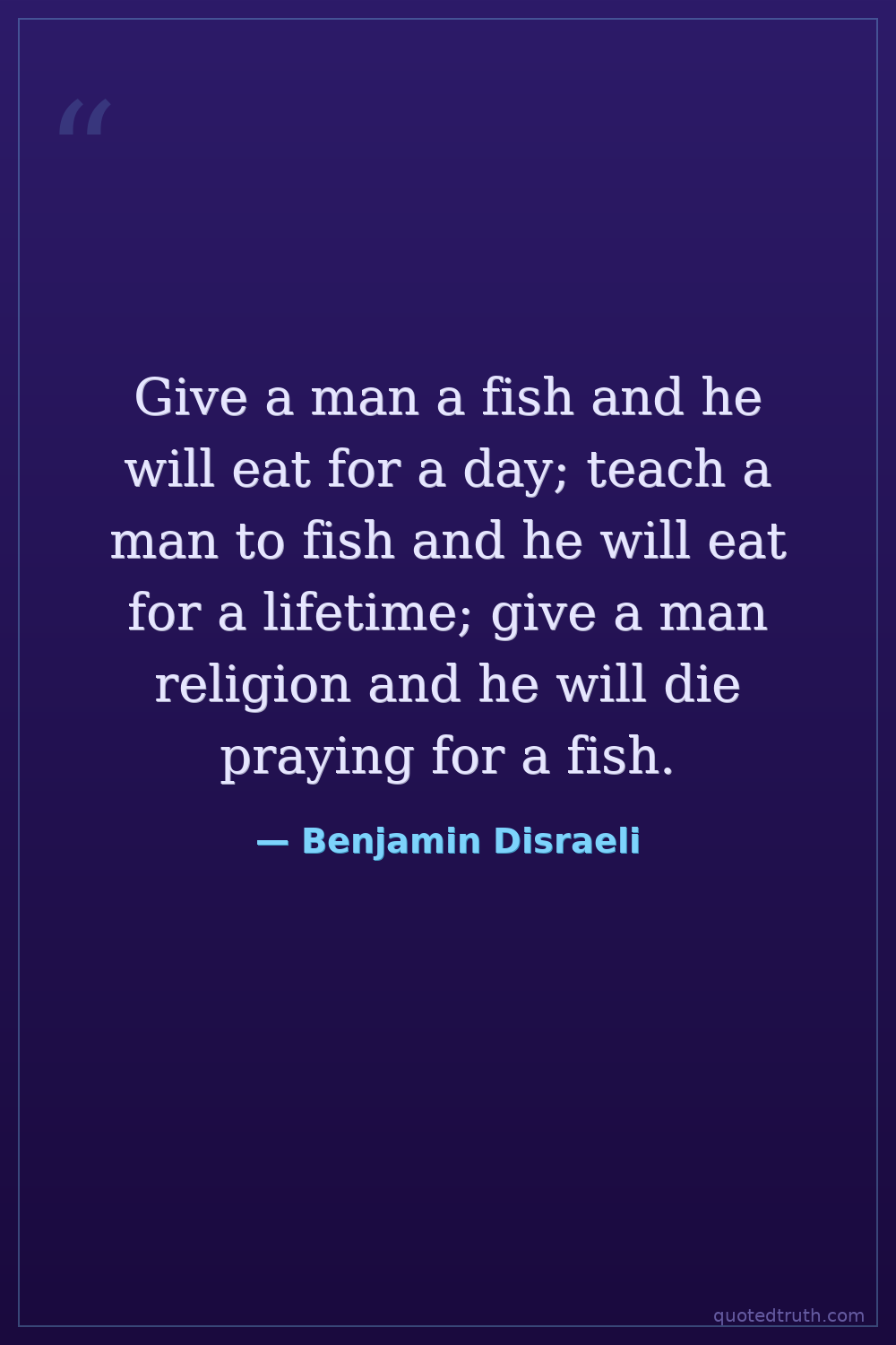 Give a man a fish and he will eat for a day; teach a man to fish and he will eat for a lifetime; give a man religion and he will die praying for a fish.