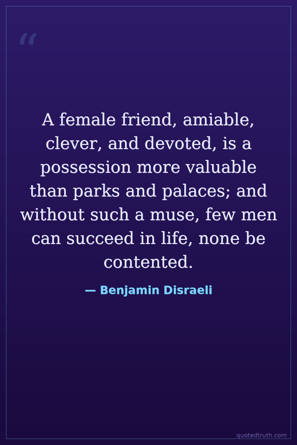 A female friend, amiable, clever, and devoted, is a possession more valuable than parks and palaces; and without such a muse, few men can succeed in life, none be contented.