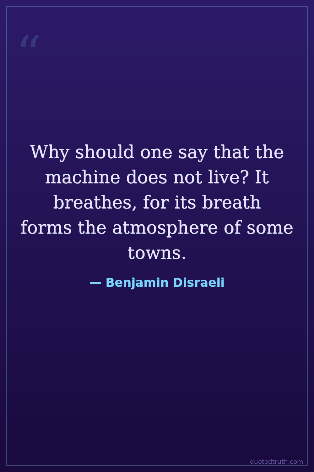Why should one say that the machine does not live? It breathes, for its breath forms the atmosphere of some towns.