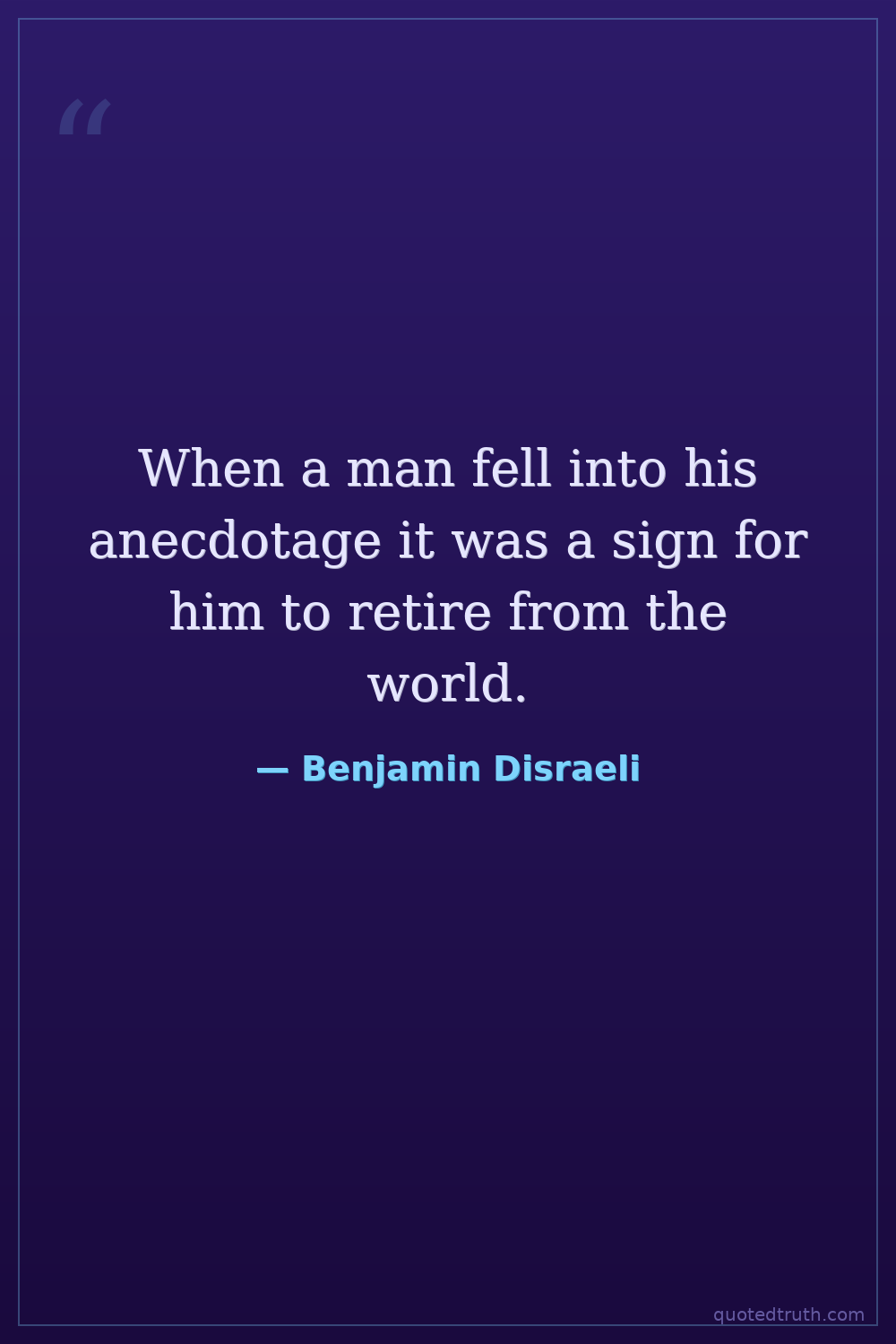 When a man fell into his anecdotage it was a sign for him to retire from the world.