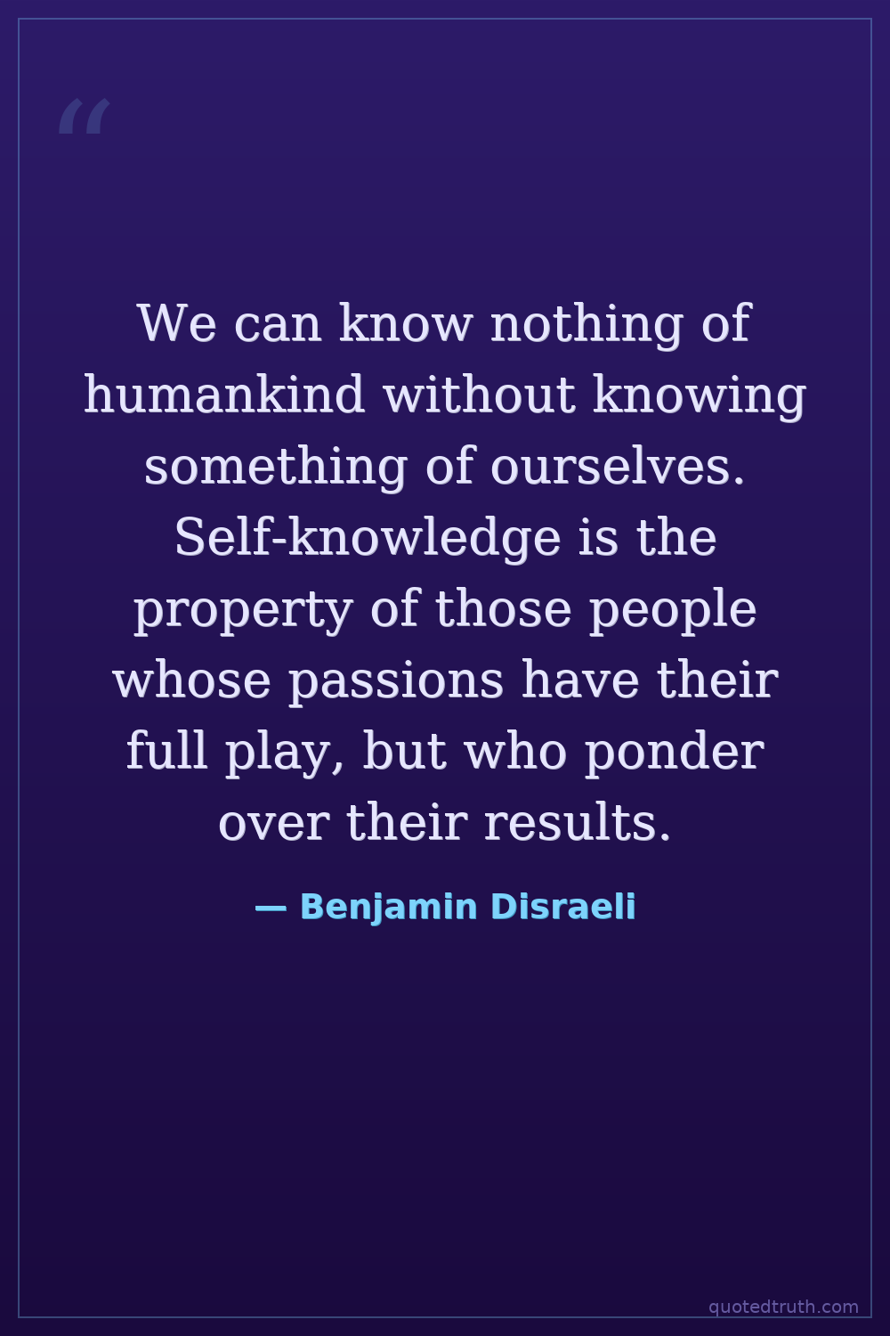 We can know nothing of humankind without knowing something of ourselves. Self-knowledge is the property of those people whose passions have their full play, but who ponder over their results.