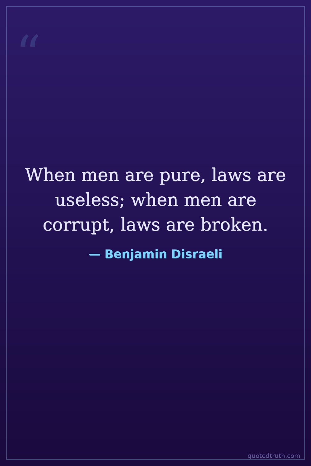 When men are pure, laws are useless; when men are corrupt, laws are broken.