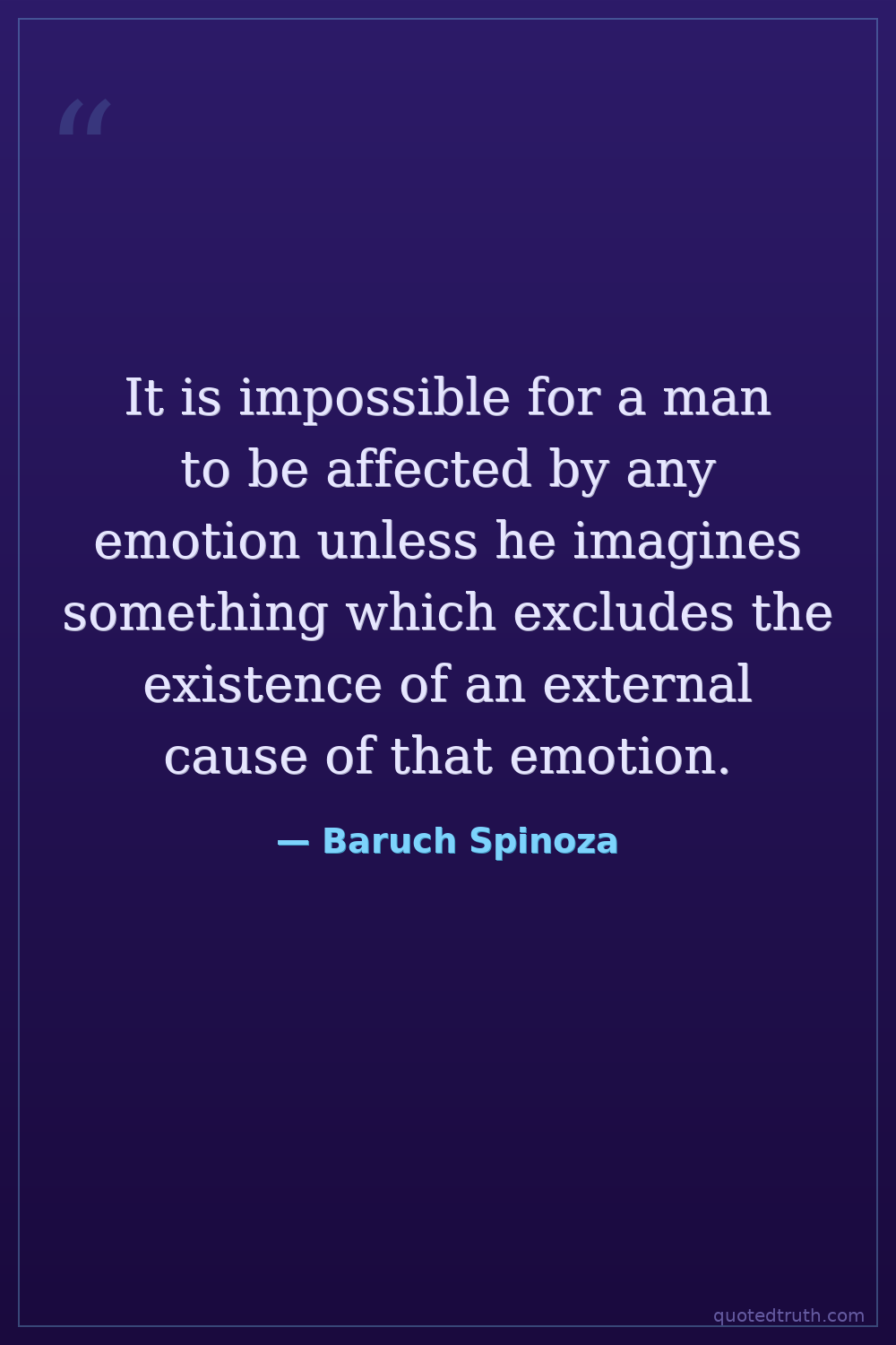 It is impossible for a man to be affected by any emotion unless he imagines something which excludes the existence of an external cause of that emotion.