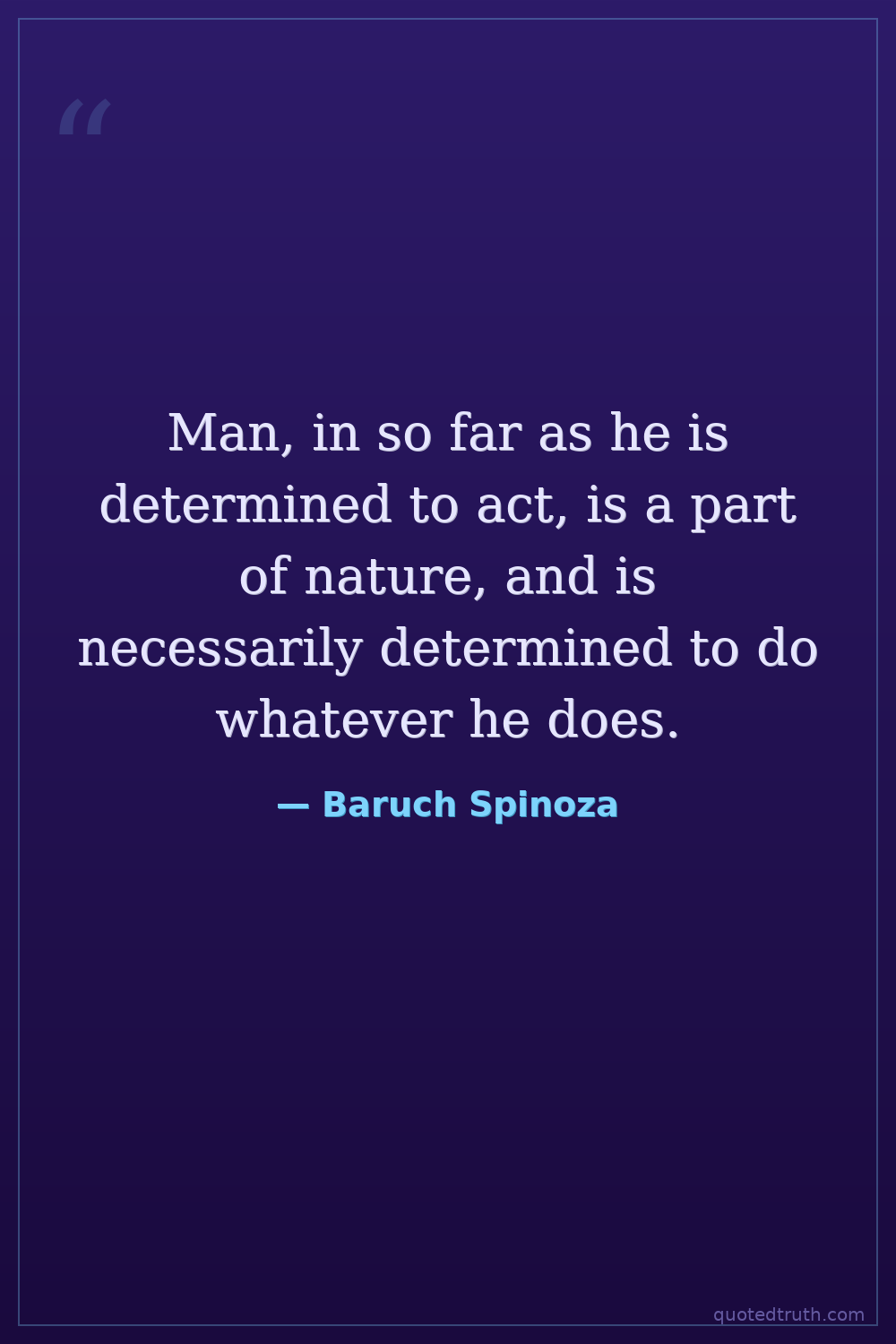 Man, in so far as he is determined to act, is a part of nature, and is necessarily determined to do whatever he does.