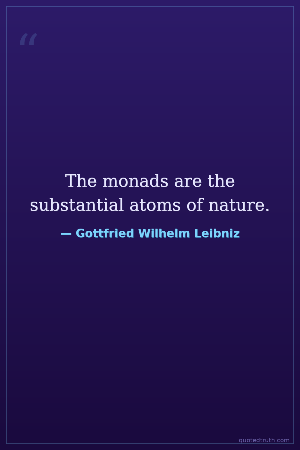 Controversial"A created thing is said to act outwardly in so far as it has perfection, and to be acted upon by another in so far as it is imperfect. Thus action is attributed to the monad in so far as it has distin…"