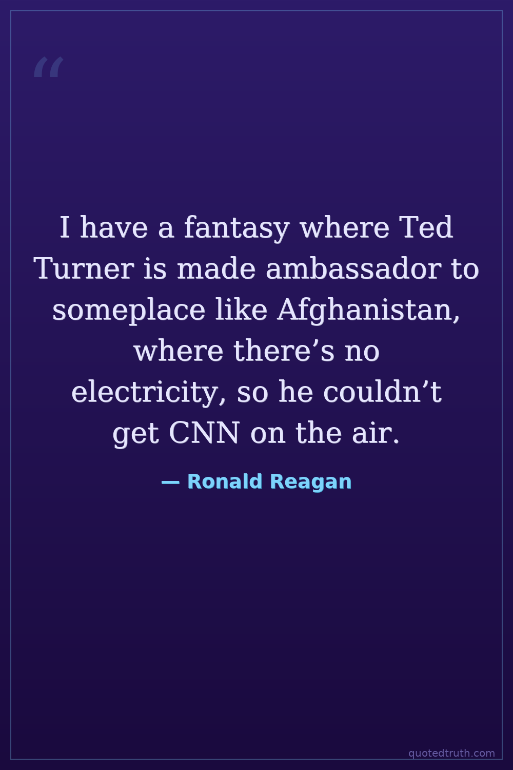I have a fantasy where Ted Turner is made ambassador to someplace like Afghanistan, where there’s no electricity, so he couldn’t get CNN on the air.