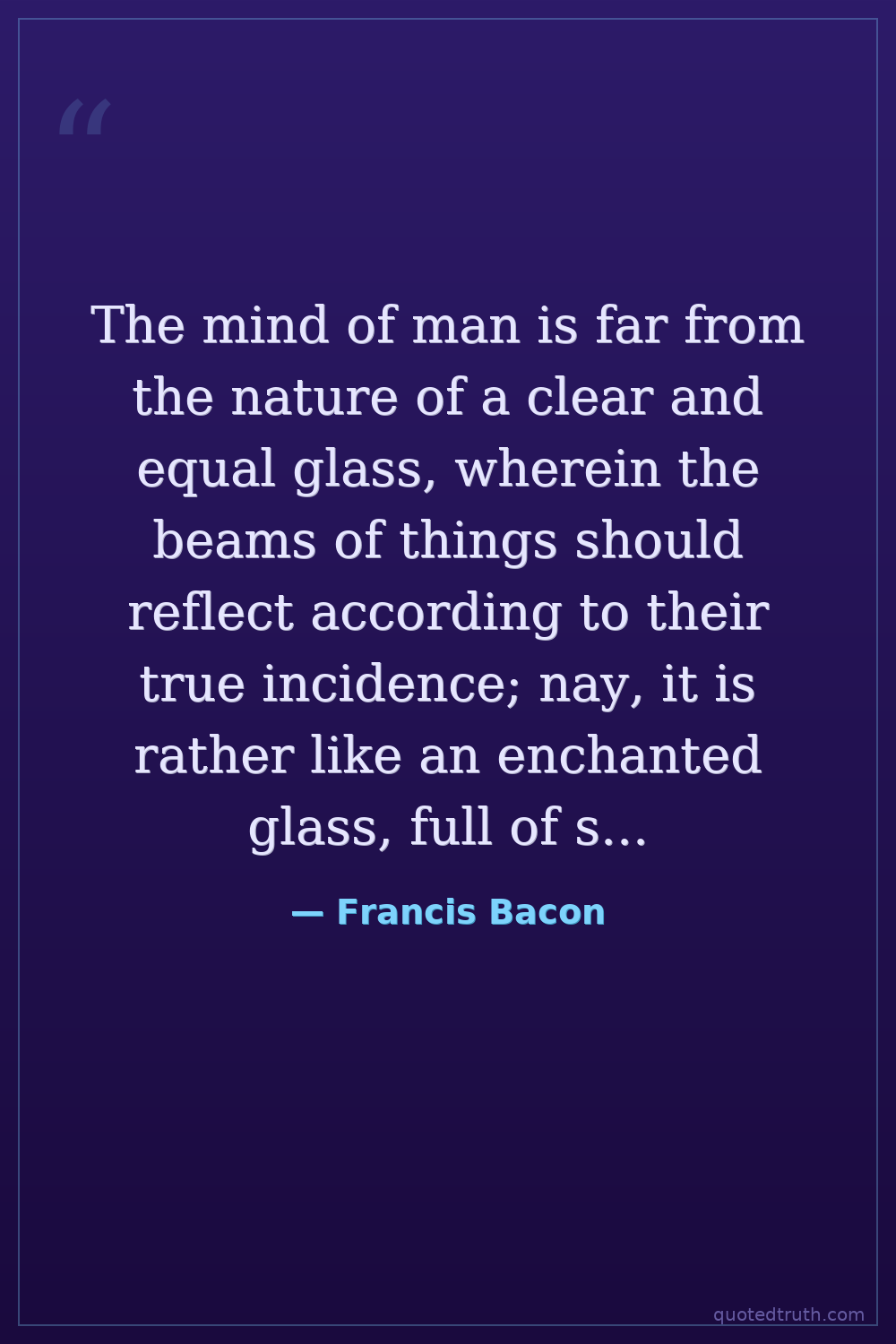The mind of man is far from the nature of a clear and equal glass, wherein the beams of things should reflect according to their true incidence; nay, it is rather like an enchanted glass, full of superstition and imposture, if it be not regulated by art and discipline.