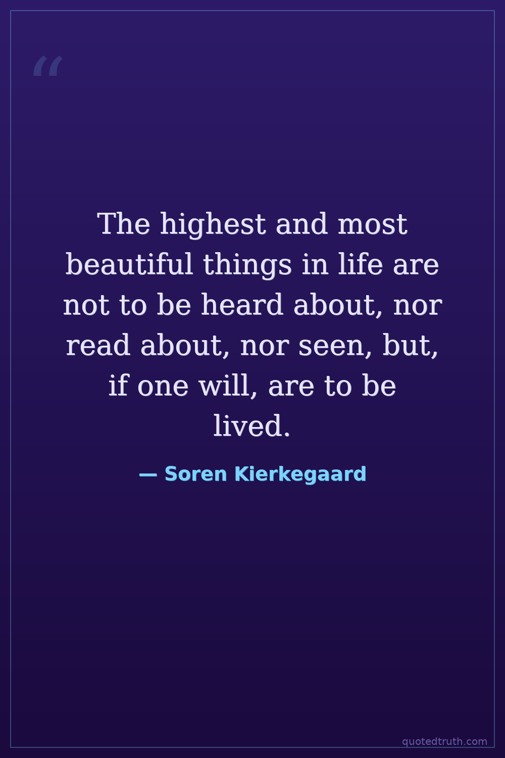 The highest and most beautiful things in life are not to be heard about, nor read about, nor seen, but, if one will, are to be lived.