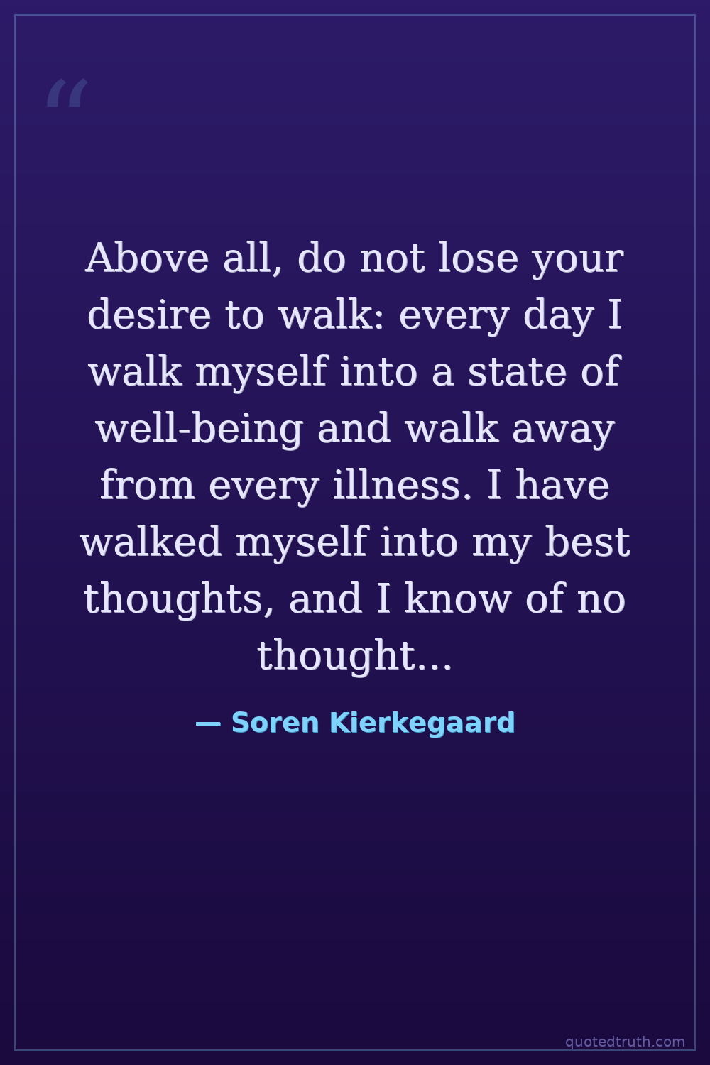 Above all, do not lose your desire to walk: every day I walk myself into a state of well-being and walk away from every illness. I have walked myself into my best thoughts, and I know of no thought so burdensome that one cannot walk away from it.