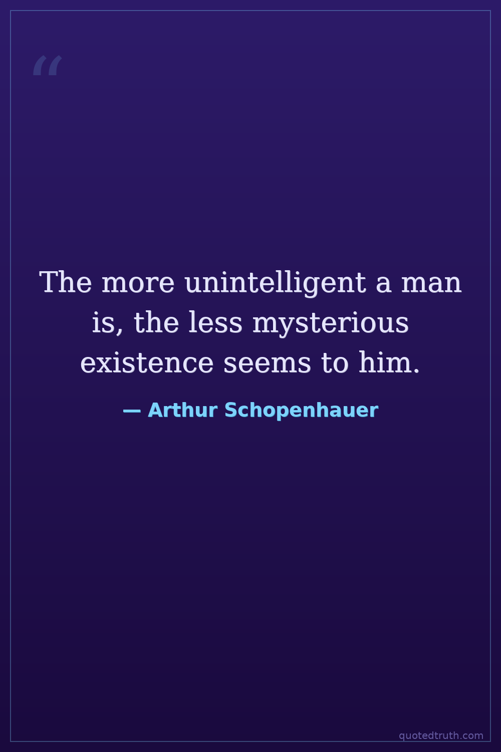 The more unintelligent a man is, the less mysterious existence seems to him.