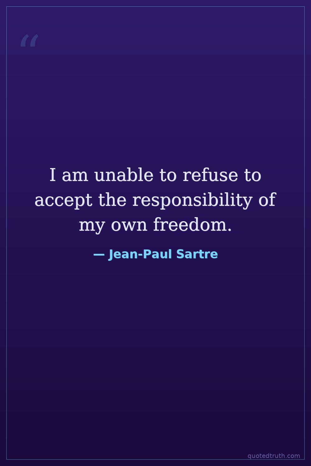 I am unable to refuse to accept the responsibility of my own freedom.