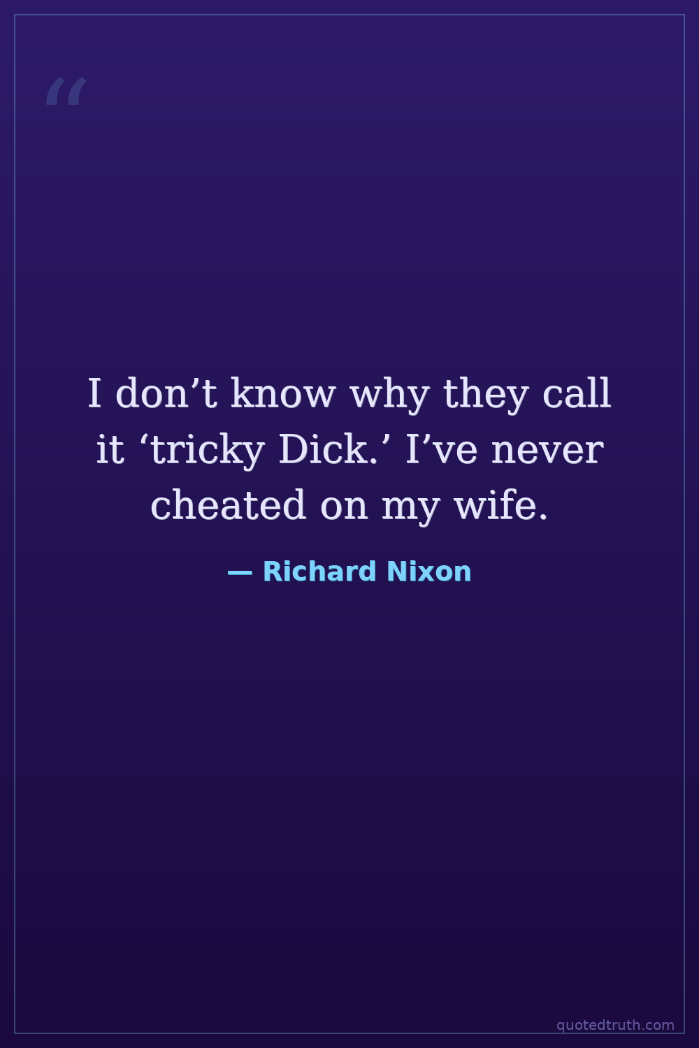 I don’t know why they call it ‘tricky Dick.’ I’ve never cheated on my wife.