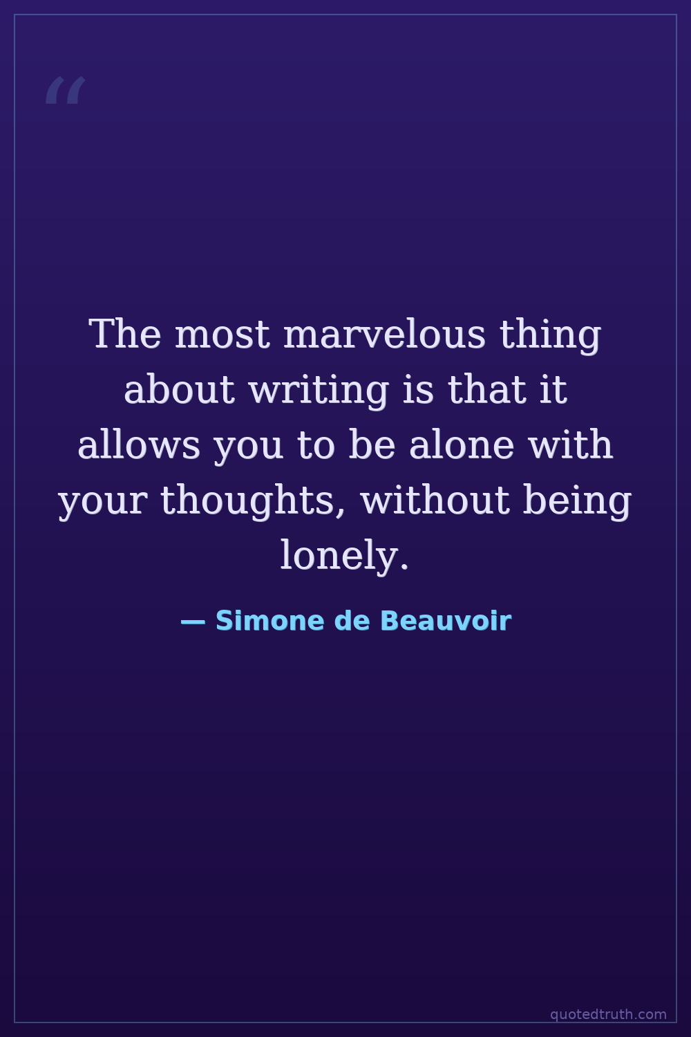 The most marvelous thing about writing is that it allows you to be alone with your thoughts, without being lonely.