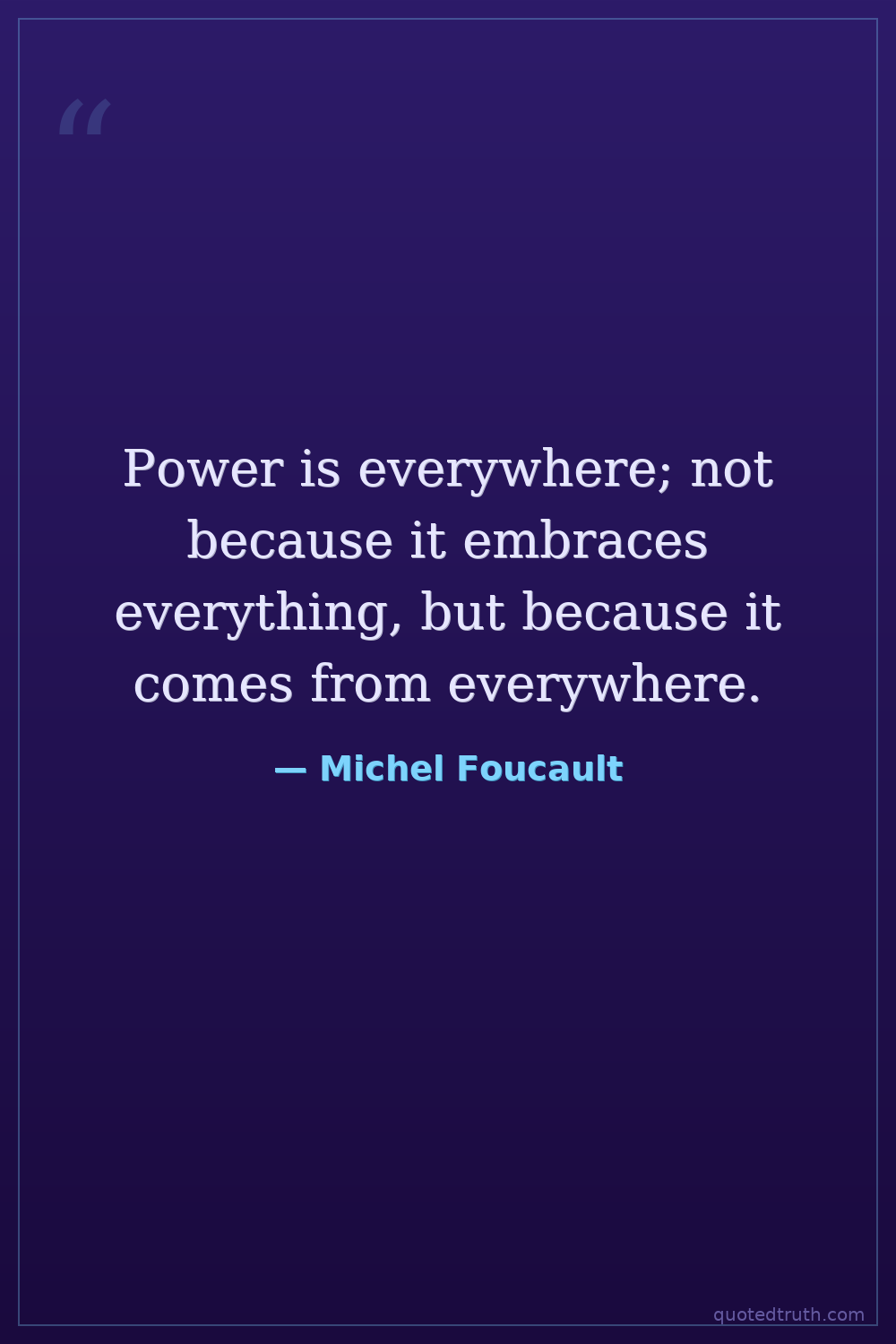 Power is everywhere; not because it embraces everything, but because it comes from everywhere.