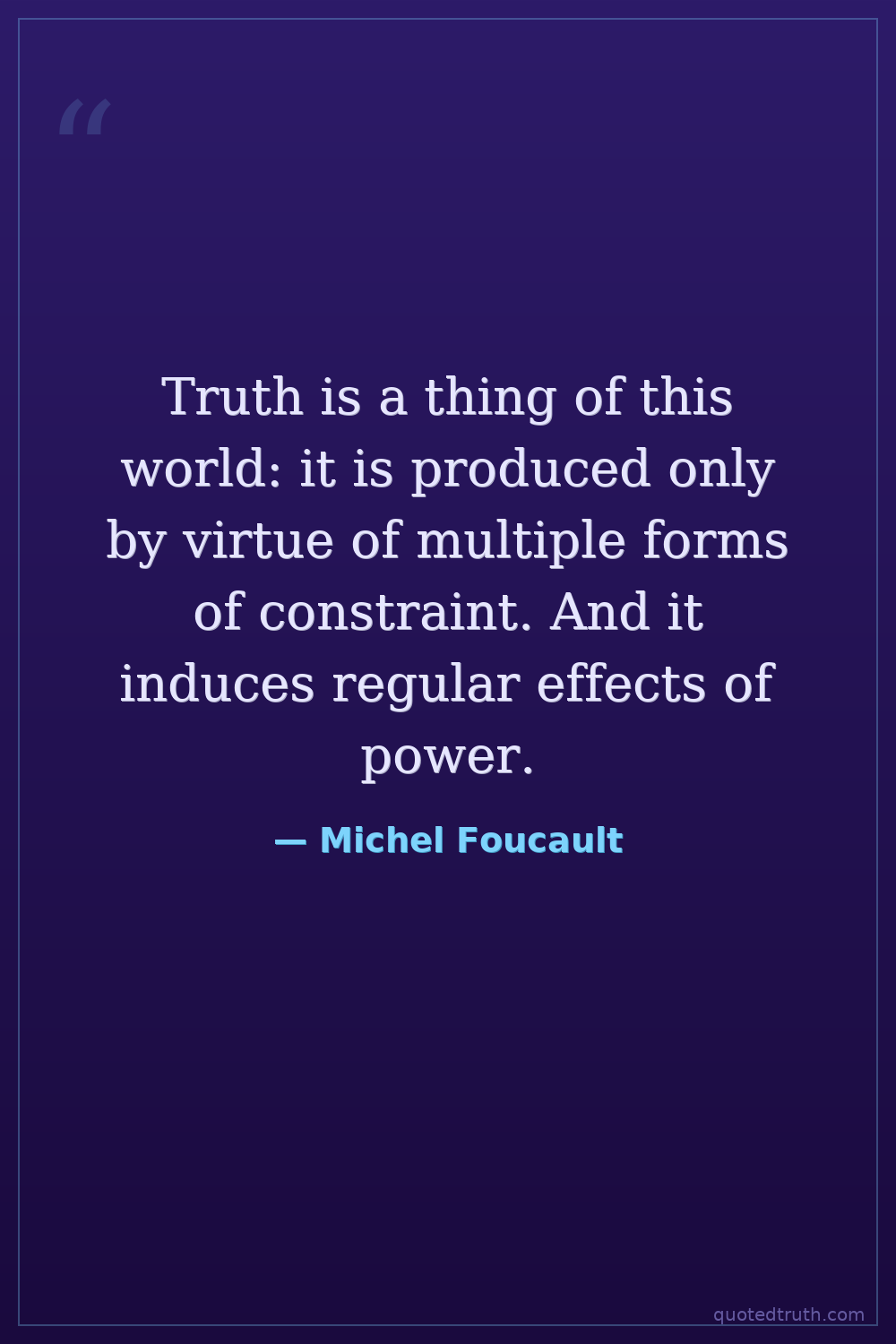 Truth is a thing of this world: it is produced only by virtue of multiple forms of constraint. And it induces regular effects of power.