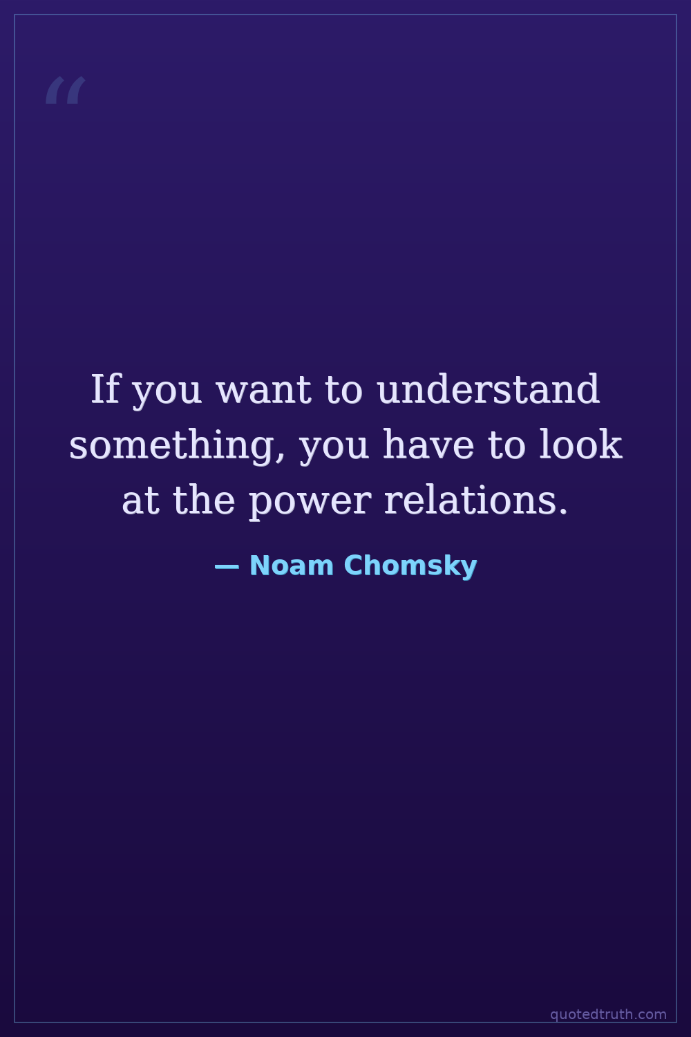 If you want to understand something, you have to look at the power relations.