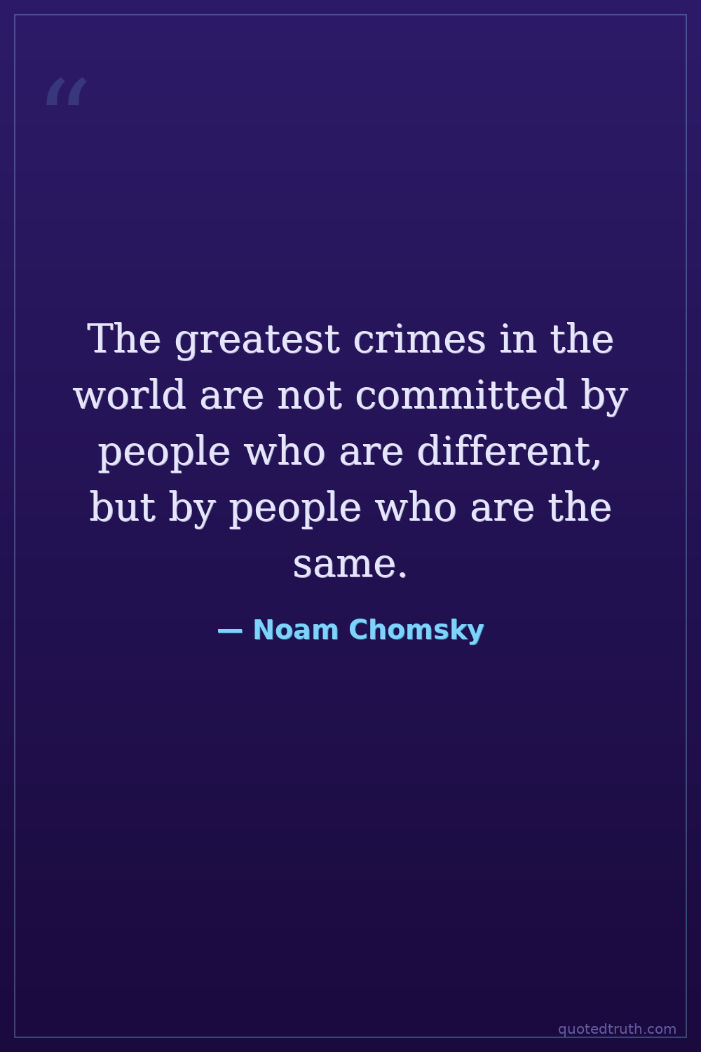 The greatest crimes in the world are not committed by people who are different, but by people who are the same.