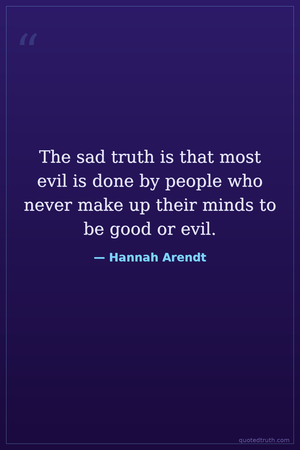 The sad truth is that most evil is done by people who never make up their minds to be good or evil.