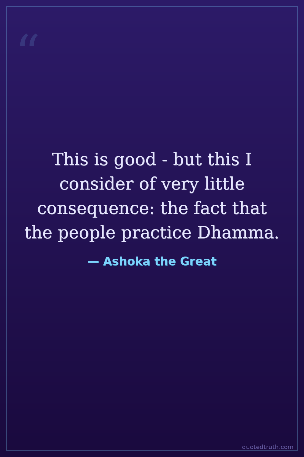 Controversial"I have had this inscription of Dharma engraved in order that my sons and great-grandsons may not consider making new conquests, or that if military conquests are made, that they be done with forbearan…"