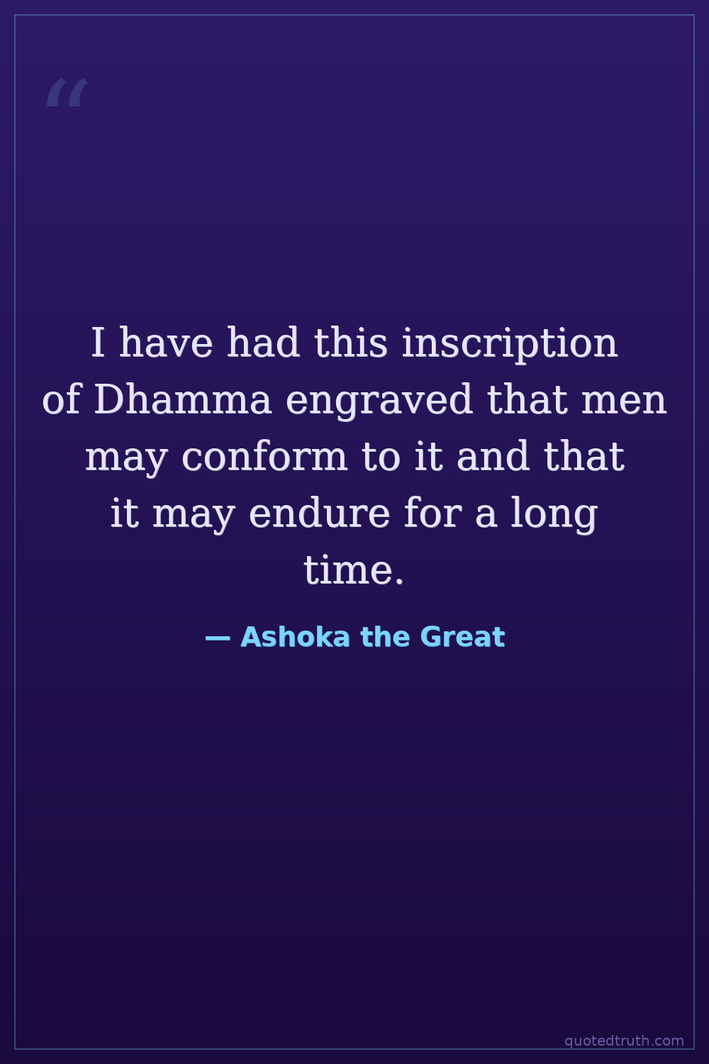 I have had this inscription of Dhamma engraved that men may conform to it and that it may endure for a long time.