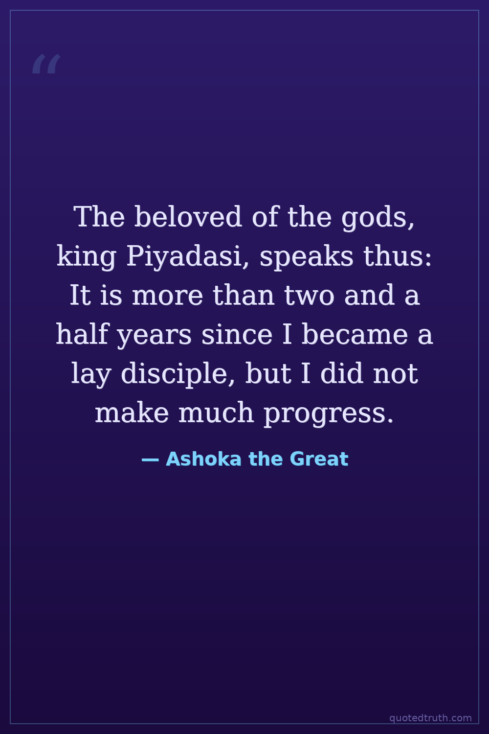 The beloved of the gods, king Piyadasi, speaks thus: It is more than two and a half years since I became a lay disciple, but I did not make much progress.