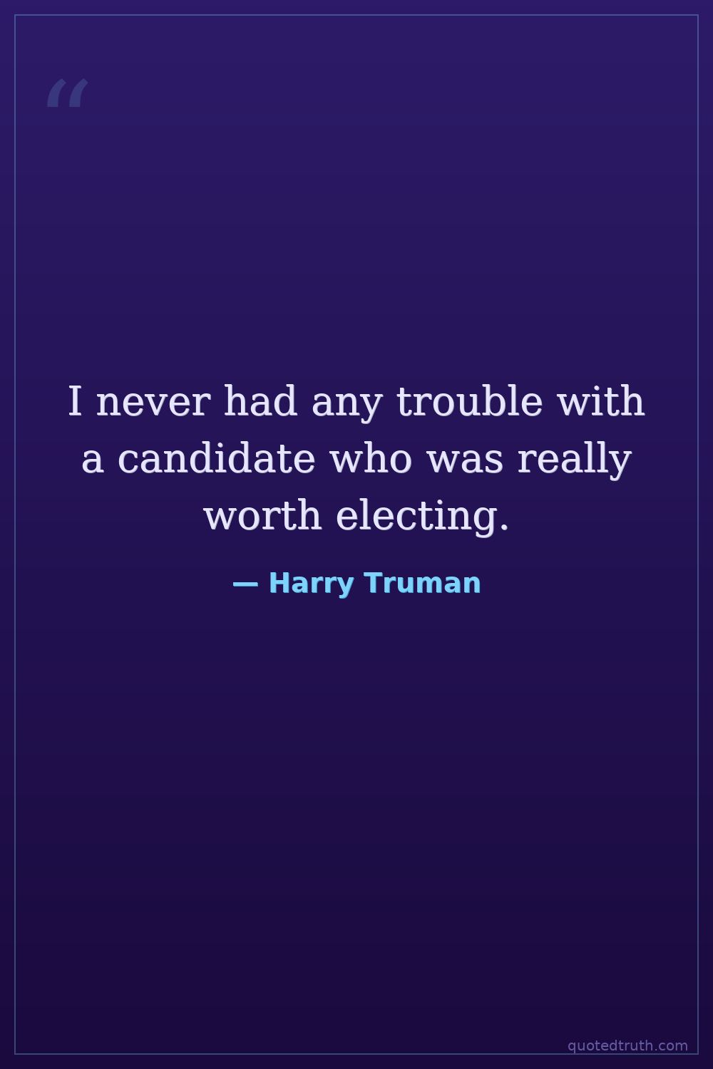 I never had any trouble with a candidate who was really worth electing.