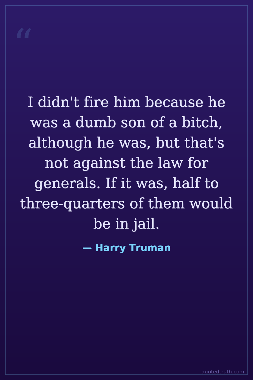I didn't fire him because he was a dumb son of a bitch, although he was, but that's not against the law for generals. If it was, half to three-quarters of them would be in jail.